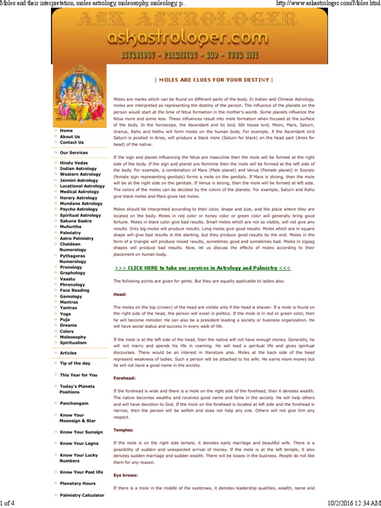 Lucky Moles on Face, Auspicious Facial Moles - Your Chinese Astrology Mole on Chin. The mole on chin is a symbol of wealth while the one around the chin suggests the rich fixed assets and good luck in real estate investment. People with such a mole are good at winning support from others and usually assisted by the pretty good subordinates. Though plain-looking, they are more likely to inherit a great legacy. 70 Moles on Different Body Parts and its Astrological Meanings Mole on Hands and Fingers Meaning- Right hand: Mole on the right hand for the female overall symbolizes meaning she is lucky to get a rich husband. The same is not the case with men. In addition, anyone with a mole on the right hand is a perfectionist and completes any task with precision. Mole Astrology for Female, Male - The Lucky Moles On Women's Body Mole Astrology for Female: As per astrology for females it should be identified on the left side of body. Each mole on the body indicates about YOGA (benefit / loss) and its meaning. If the mole is located on the right side for women it may show a little negative effect. We have to count the total moles from both sides and compare. Mole Meanings - Hidden Meanings of Moles on Body Mole on the right or left eyebrow of the female means that they will earn a lot of wealth. They will never feel any short of money in their life. There will be financial stability. However, they will tend to overspend the earned money. Know more about Yearly Horoscope @$ 14.99 Yearly Horoscope (Apr, 2022 - Apr, 2023) Raj Yog @$ 9.99
