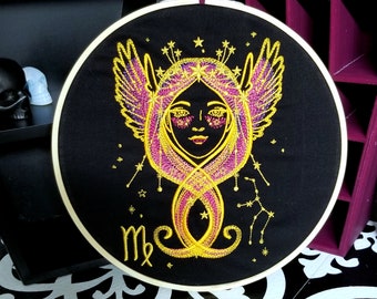 Virgo the Maiden Astronomy Astrology Zodiac Constellation 8 inch Embroidery Hoop Art gothic Alternative Home Decor Witch Gothic Mtcoffinz