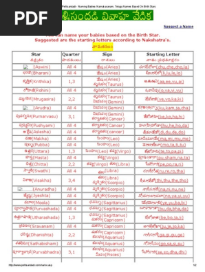 Baby names based on date of birth - Jothishi This page calculates the Baby name based on Janma Nakshatra as per Vedic astrology. One can find baby name by providing birth date, birth, and time of birth. Also, with a Janam Patri for the Baby. Jothishi iFrame Combination baby names - BabyCenter India 1. Find the names that you want to create a combination name from. In our example, we will use two names of say the mother and father – Priya and Aditya. 2. Break each name into syllables: Priya gives us Pri and Ya; Aditya gives us Ad, It and Ya. Notice that these two names have a common syllable – Ya. Baby Names belongs to Telugu origin - Indian Astrology List of baby names are listed here that belongs to Telugu origin. Every name belongs to Telugu origin if matches then boosts value in life. ... Basics of Astrology; Planets; Nakshatras(Stars) Ascendants(Lagnas) Various Yogas; 12 Houses (Signs) Graha Mantra; Ephemeris; Baby Names; Shop;