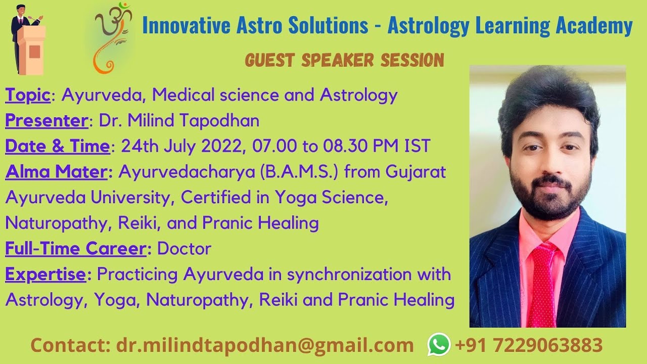 Ayurveda, Medical science and Astrology by Dr Milind Tapodhan | Medical ... Dr Milind Tapodhan is a renowned Ayurveda Doctor. Milind is an expert doctor who helped countless people through his skills in medical science, Yoga science,...