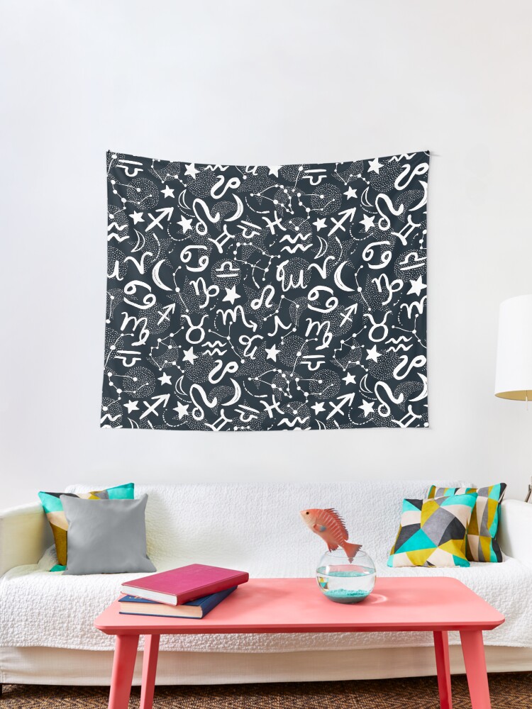 Astrology Wall Art with Frame, Sacred Geometry Love Synastry Natal Chart Zodiac Signs with Hearts, Printed Fabric Poster for Bathroom Living Room, 35" ...