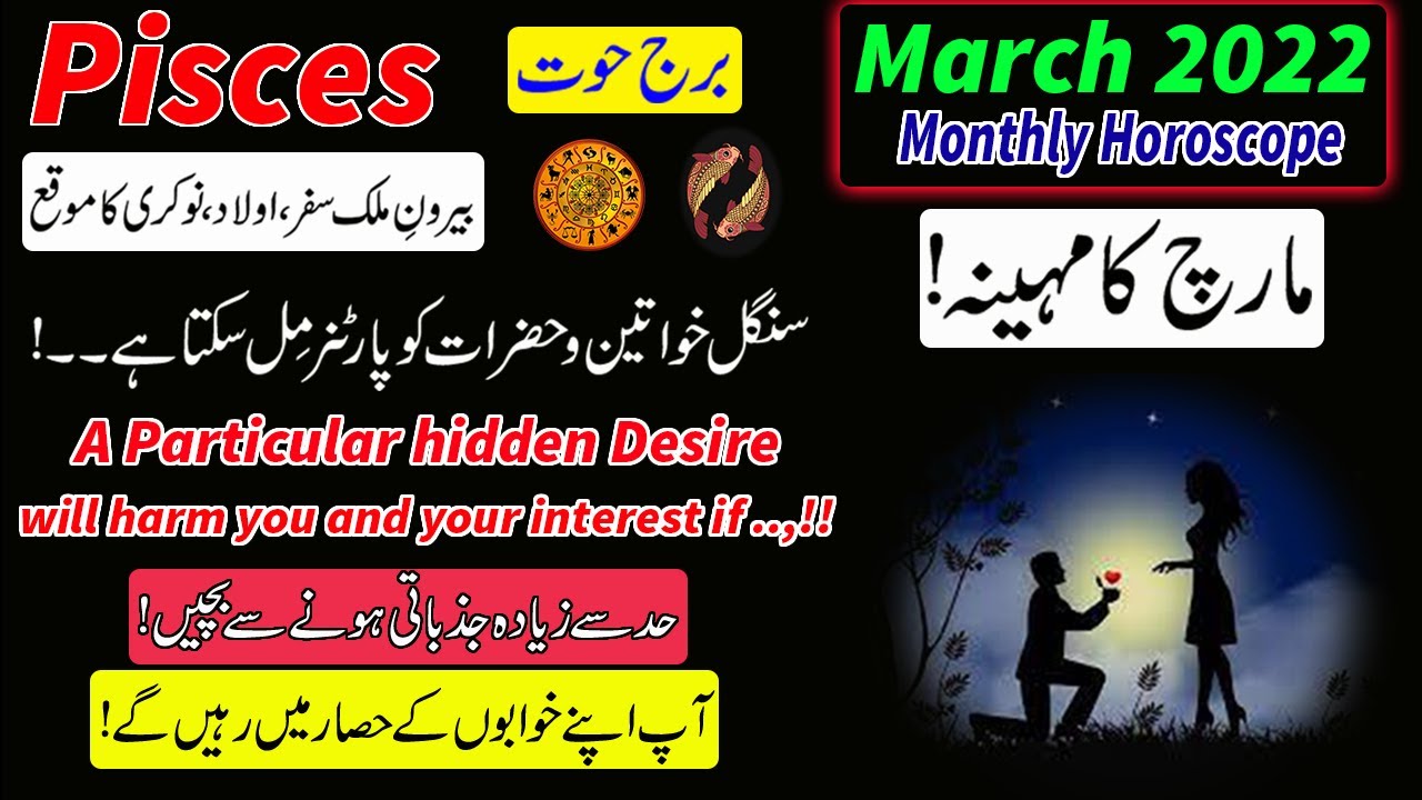 Today Pisces Horoscope in Urdu 2022 - Love, Career & Future Horoscope Today Horoscope in Urdu Pisces The third zodiac sign in the stars is Pisces, which initiates its cycle toward the end of winter from February 19 till March 20. In Urdu, it is known as Burj Hoot, written as برج حوت. The symbol of Pisces is "The Fish''. So, if you are a Pisces, you are at the right place to view Today Pisces Horoscope in Urdu.